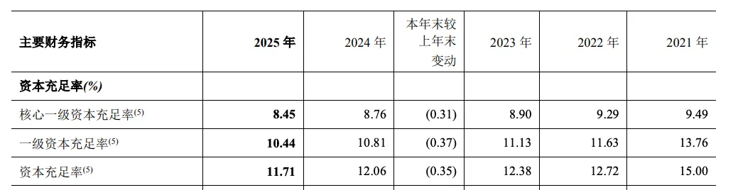 上图清晰展示,自2021年开始,郑州银行在核心一级资产充足率、一级资本充足率以及资本充足率三个核心指标上都实现5年连降。