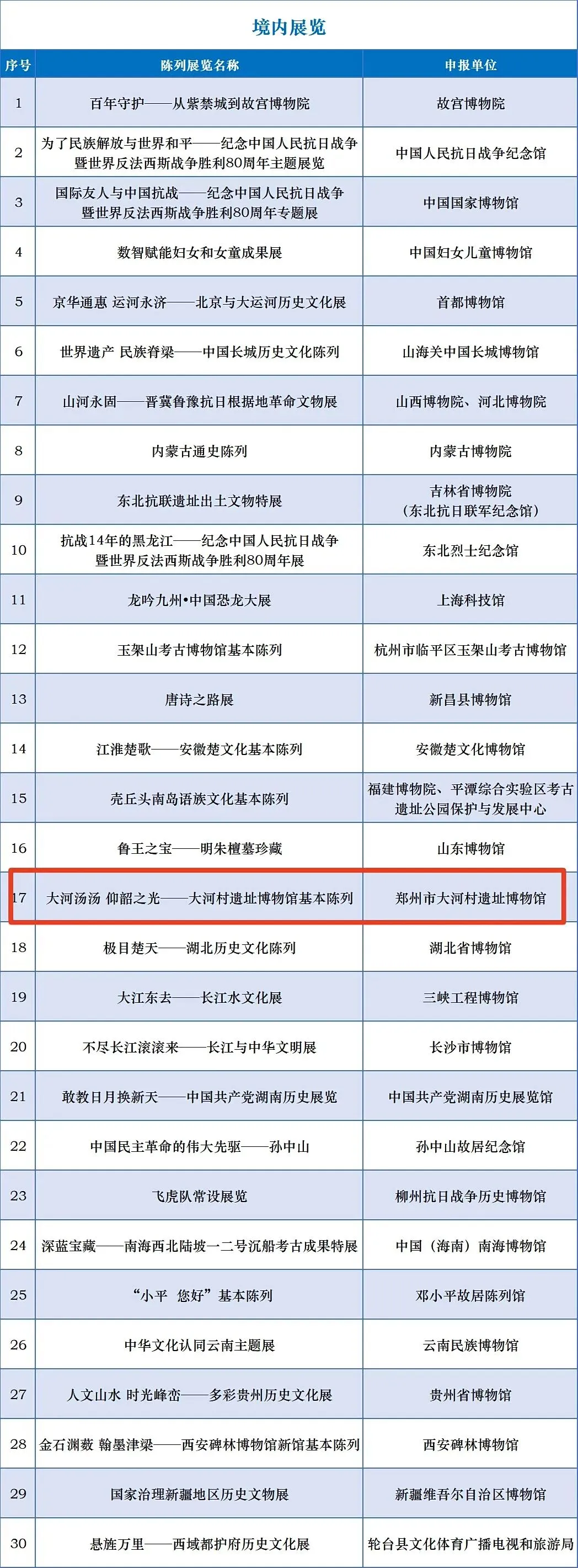 全国博物馆十大陈列展览精品是由国家文物局指导,中国博物馆协会、中国文物报社主办的博物馆陈列展览评选活动,1997年启动,每年从全国数万个展览中评选十大精品项目,被誉为“博物馆界的奥斯卡” 。第二十三届(2025年度)全国博物馆十大陈列展览精品推介活动入围终评项目名单