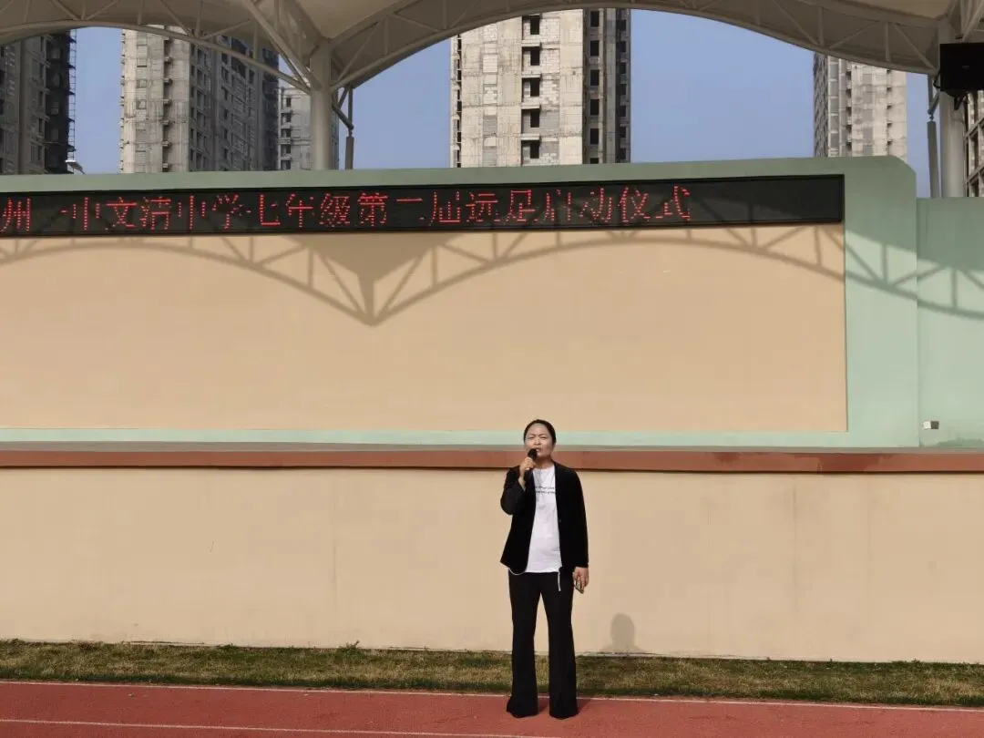 清晨8点,全体师生准时集结。出征仪式上,学校领导致辞为同学们加油鼓劲,强调安全与纪律,鼓励大家以饱满的精神状态迎接挑战。随着出发指令响起,同学们迈着坚定的步伐,以班级为单位有序出发。
