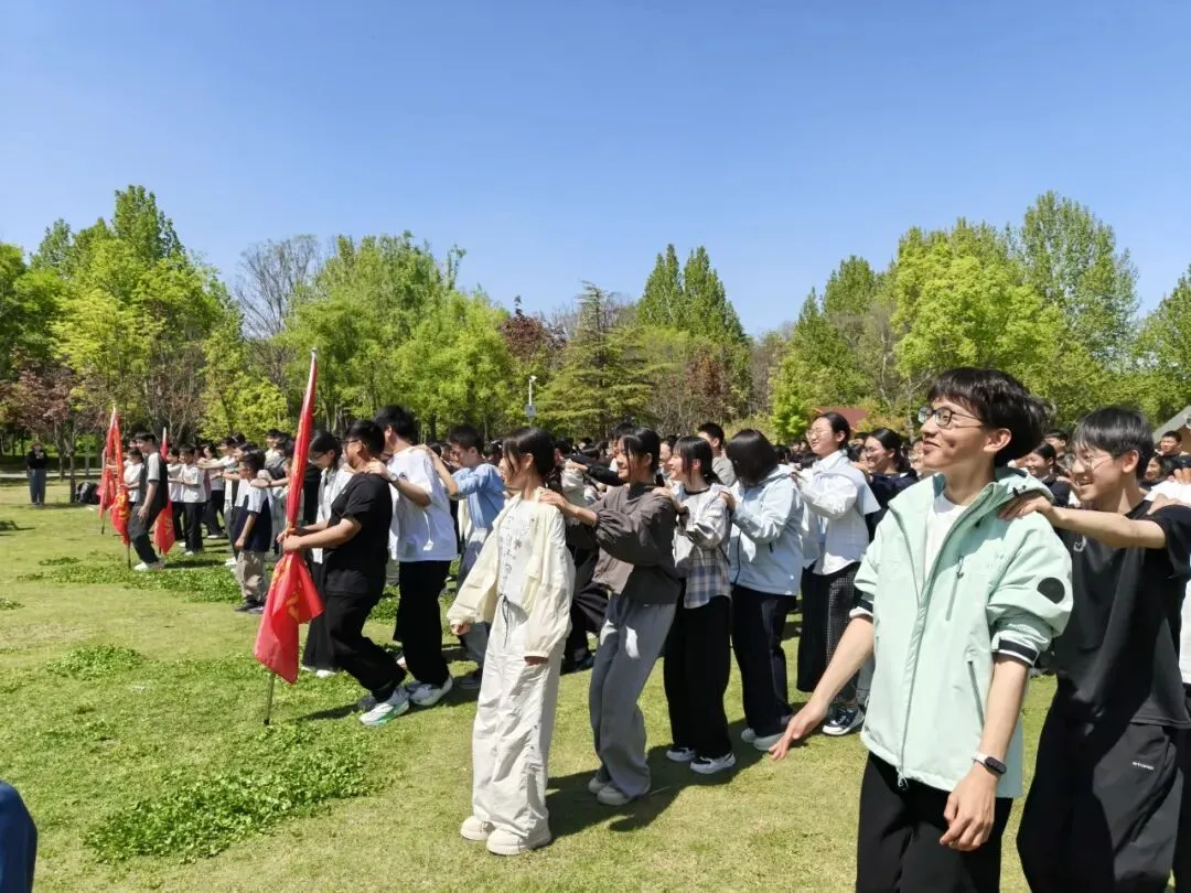 抵达绿博园后,同学们以班级为单位有序入园,在落日折叠区开展了精彩的趣味活动,舞动出了少年的热血与担当,也舞动出了对祖国的热爱与祝福。