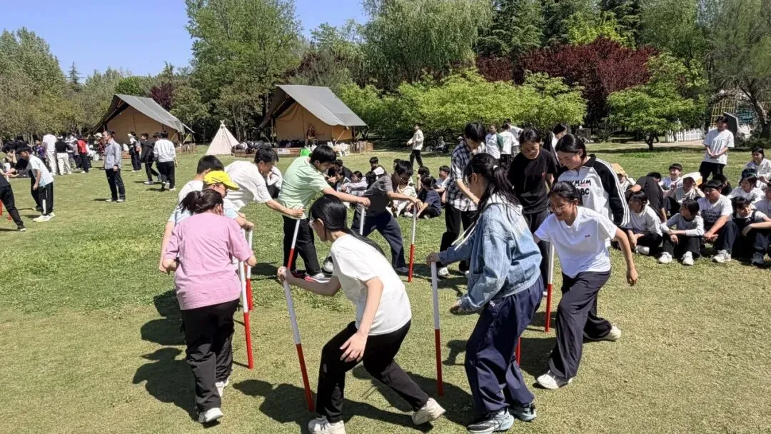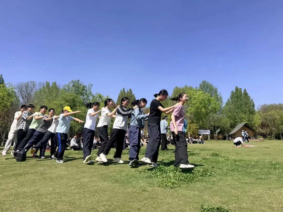 午餐休整后,游戏环节正式开启!暖场兔子舞、暖场森林、巨人脚步、翻卡牌、齐心站立、一丛到底、丛林穿越……丰富多样的游戏项目,让同学们在协作中凝聚力量,在欢笑中收获友谊。每一个项目都充满挑战与乐趣,同学们尽情释放活力,在团队配合中学会坚持、懂得包容,在春日里尽情绽放青春光彩。