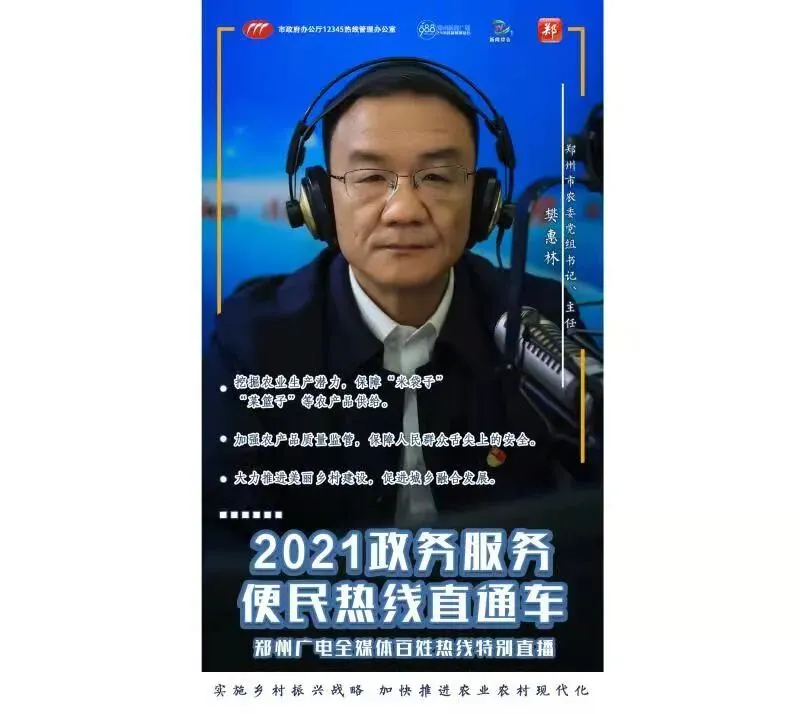 10月26日早上,郑州市农委党组书记、主任樊惠林带队做客《政务服务便民热线直通车》节目,接听市民热线,解决群众反映的问题。