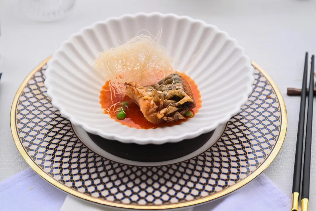 此外,黑胡椒红酒溏心干鲍、波士顿龙虾佐擂茶酱、羊排烩面、寺河山苹果派等菜品,每一道都在传统与现代、东方与西方之间找到了巧妙的平衡点。