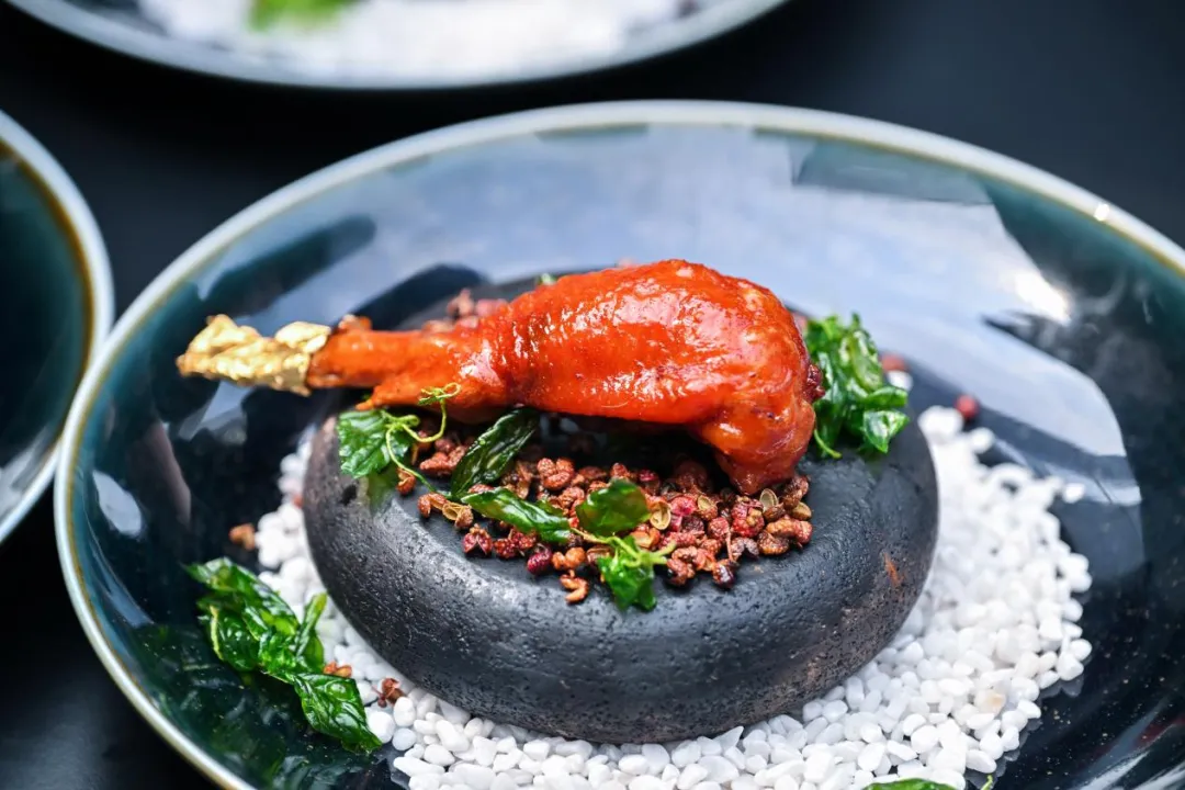 黑松露荆芥脆皮鸡翅将美式BBQ与传统炸八块融合,秘制酱汁加入黑松露提鲜,外皮金黄酥脆,热岩板激发大叶荆芥与花椒的香气,一口惊艳。