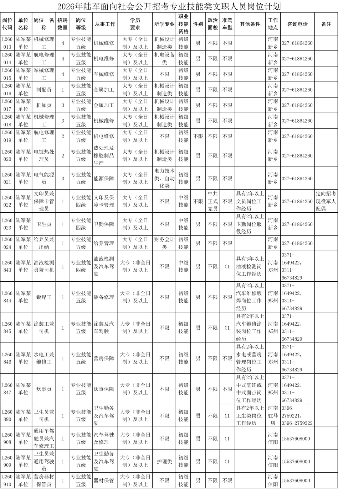 为延揽优秀人才为国防和军队建设服务,根据《中国人民解放军文职人员条例》及有关政策规定,陆军将组织实施2026年面向社会公开招考专业技能类文职人员工作。现就有关事项公告如下: