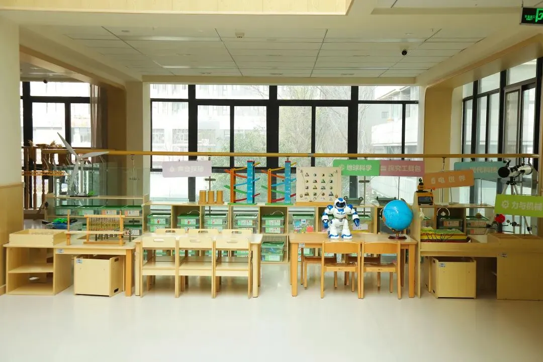 活动室宽敞明亮,区域划分合理,教玩具丰富,现代化教学设备一应俱全。设有绘本室、科探室、机器人馆和木工坊四大特色教室。能满足幼儿学习、生活与发展需求,是幼儿成长和学习的理想乐园。