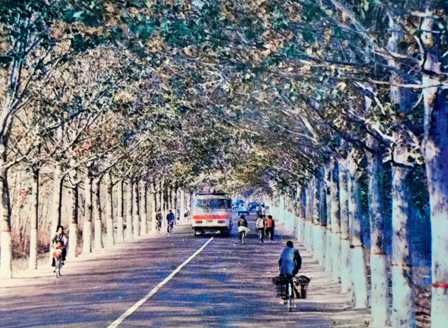 1975年,花园口路的金水路至纬五路段扩建两边慢车道,快慢车道之间栽植4排法桐行道树。每到夏天,绿树成荫,傍晚常有市民在林荫两侧下棋、聊天,呈现出一幅祥和的城市图景。