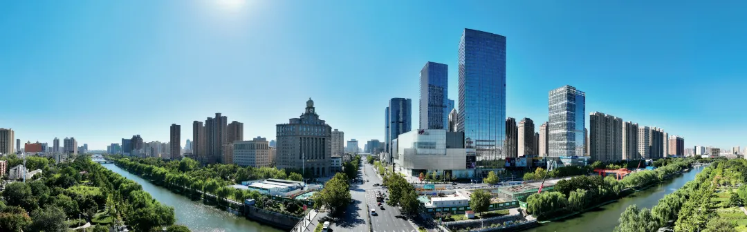 阳光照耀下的东风渠与花园路两侧的建筑交相辉映 范建军 2022年 摄