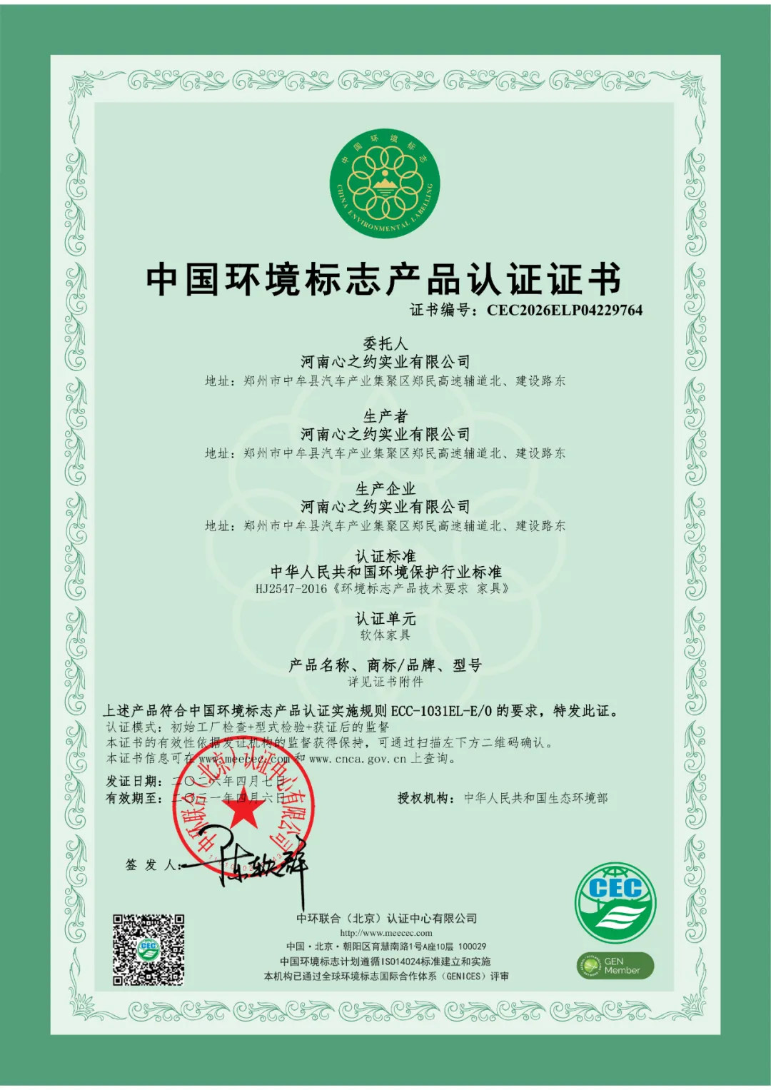心之约历经中环联合(北京)认证有限公司严格的文件审核、现场核查、产品抽样检测、供应链管控等多重环节考验,全线产品均达标获批,用权威资质印证品牌对环保与健康的坚守。这一认证的获得,不仅是对产品环保实力的官方背书,更让心之约的权威认证矩阵再添重磅砝码,品牌公信力与市场竞争力持续跃升。