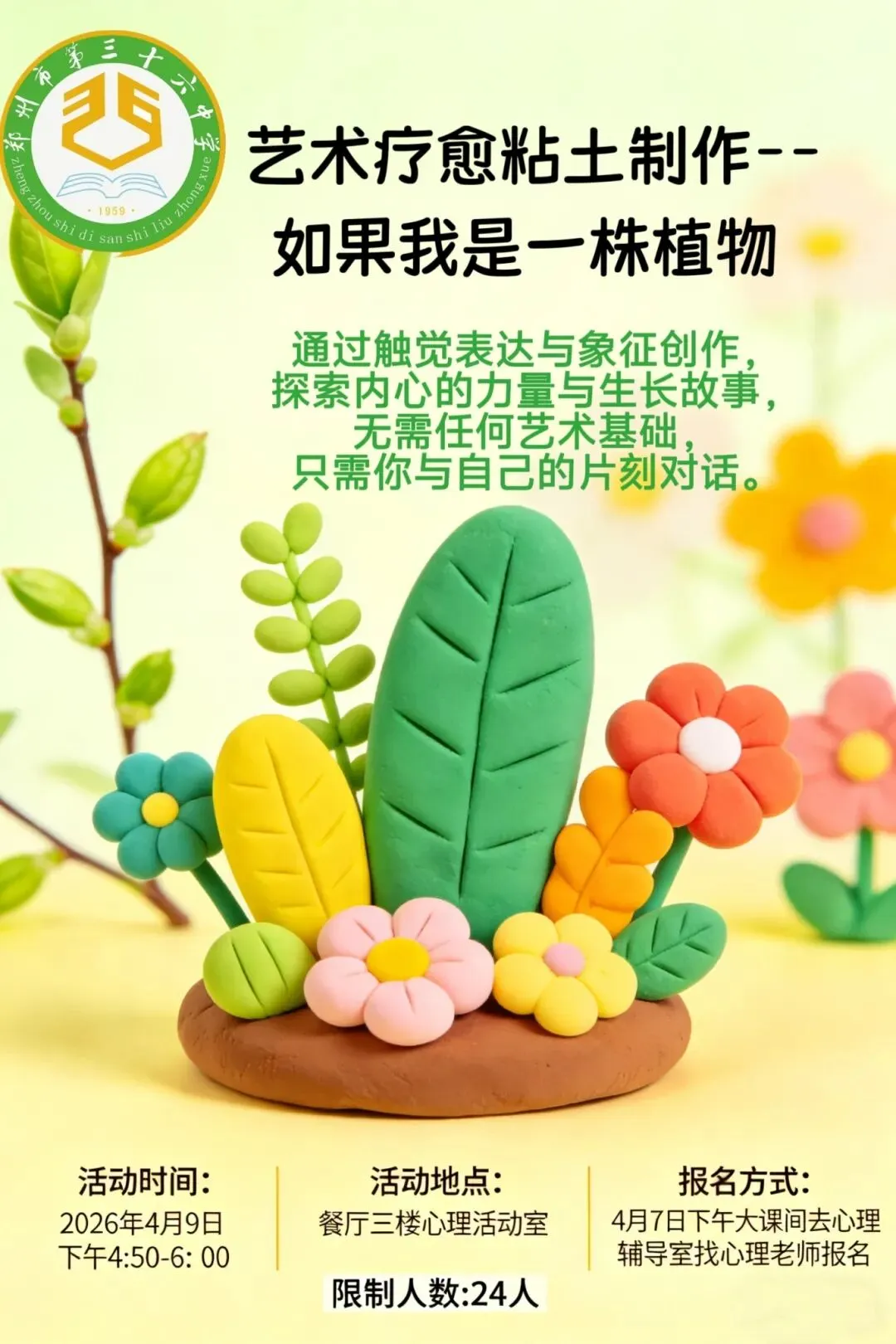 4月9日下午,郑州市第三十六中学举办了以“艺术疗愈——黏土制作”为主题的心理团体活动,旨在通过黏土创作帮助学生释放情绪,接纳自我。