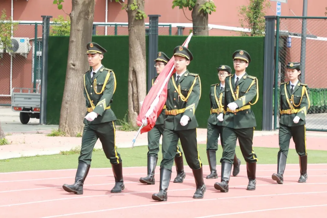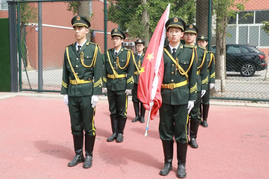 伴随着《歌唱祖国》的旋律,护旗手步伐坚定,护送鲜艳的五星红旗走向旗台。当国歌奏响,全体师生肃立行注目礼,注视着五星红旗冉冉升起,迎风飘扬。现场气氛庄重肃穆,爱国之情在每个人心中激荡。