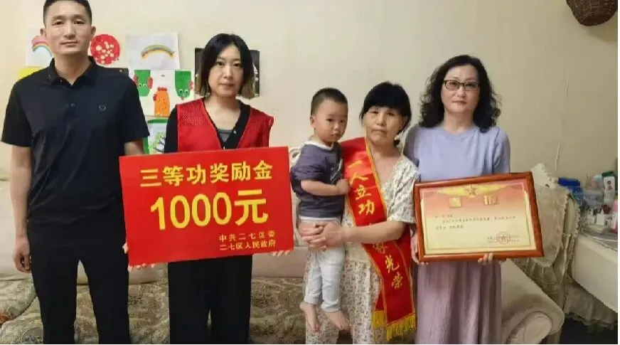 5月8日,二七区为荣获三等功的现役军人家庭送立功喜报。