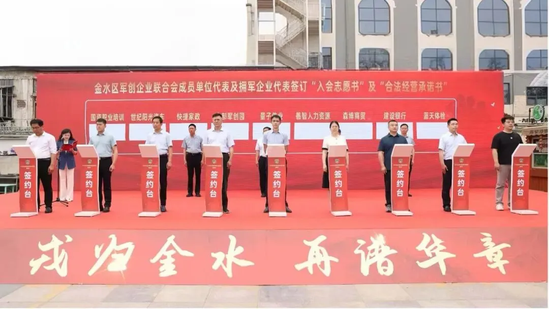 5月14日,金水区退役军人服务中心在郑州记忆·1952油化厂创意园举办2025年金水区军创企业联合会成立仪式暨“百企千岗”军创企业专场招聘会。