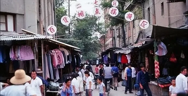 现在不少人一提过去,就爱说简陋。可你看这种地方,简陋归简陋,人气是真足,买卖也是真活。有人挑衣服,有人推车往里钻,有人站着闲聊,旁边小孩跟着大人乱跑。这样的街,未必整齐,却特别真实。城市的热闹,不一定都在大商场里,有时候就在这种能听见讨价还价声的小巷子里。