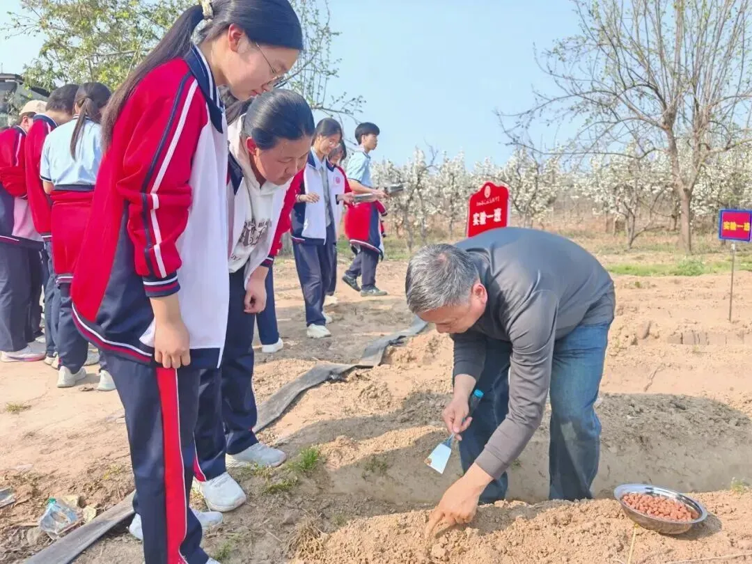 郑州市实验高级中学高一年级师生暂别书本与黑板,踏着春日暖阳走进郑州市实验高中农耕文化劳动教育课程实践基地,开启了沉浸式农耕劳动实践活动。