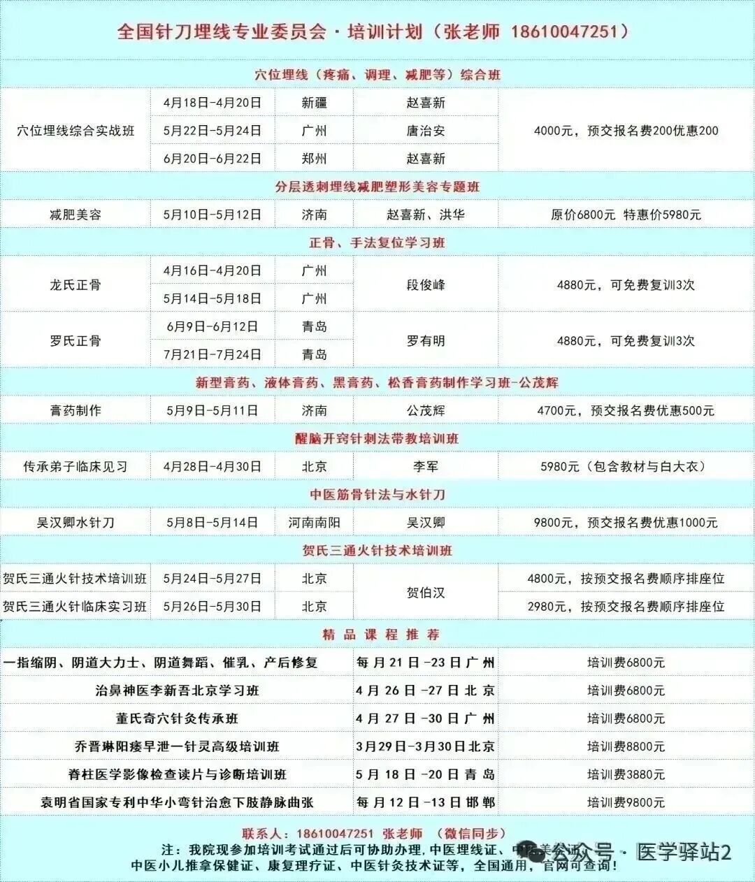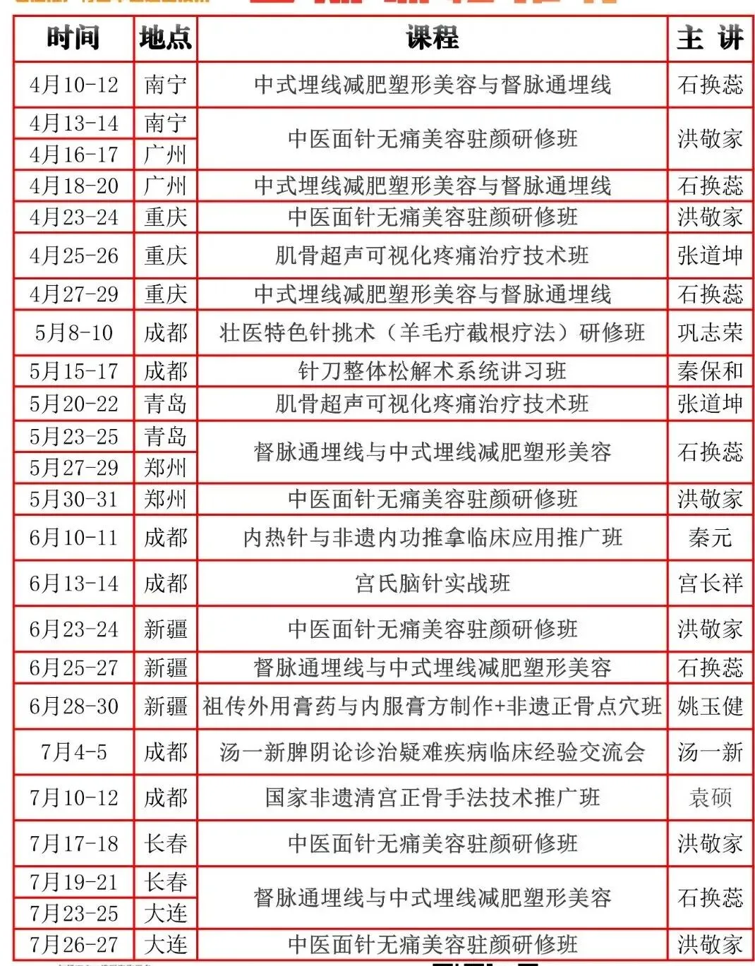 近年来,我国肥胖、脊柱相关疾病与多种慢性病高发,严重危害人民群众身心健康。脊柱失衡、经络不通、气血失调是导致疼痛、代谢异常与慢病迁延的关键因素。为推广中医特色适宜技术,提升临床在慢病防治、体重管理、脊柱健康与中医微创诊疗方面的综合服务能力,中关村炎黄中医药科技创新联盟经研究决定,于2026年5月下旬先后在山东青岛、河南郑州举办督脉通埋线疗法与中式埋线减肥微整形及中医整脊高级研修班。现将有关事项通知如下: