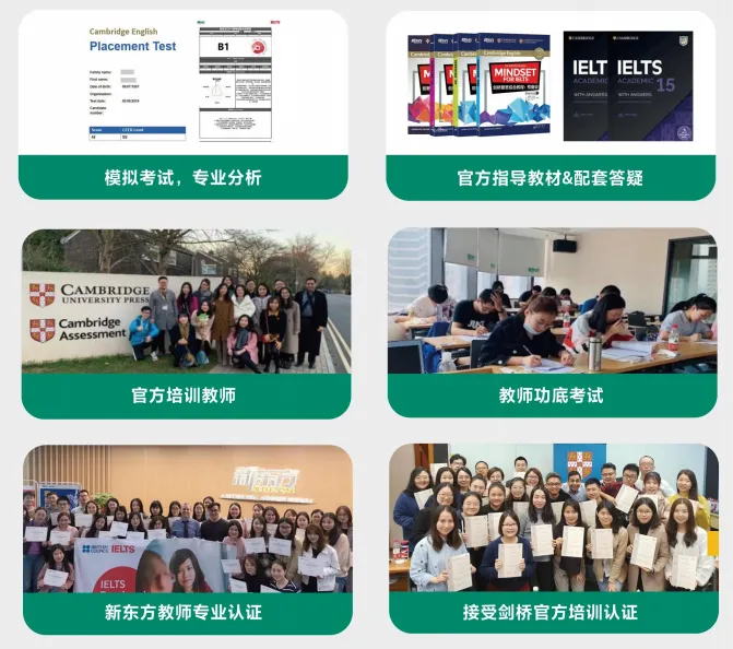 · 官方定制教材:使用剑桥大学出版社与剑桥大学外语考试部联合研发的《Mindset for IELTS》系列,新东方独家落地出版。