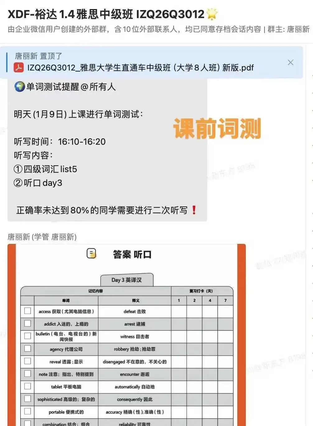 课前:起跑计划,词汇打卡,提前热身。