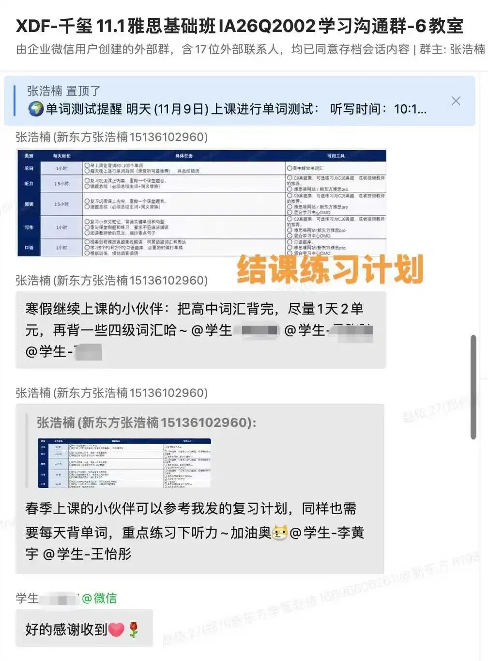 课中:精讲精练,作业批改,学情反馈,助教跟盯,单词抽查。