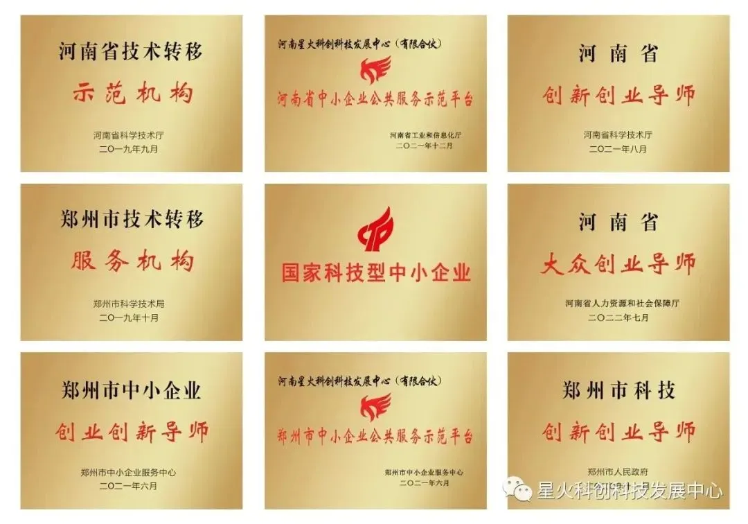 河南星火科创科技发展中心是专门从事技术转移、科技成果转化的综合服务推广平台,致力于将科研成果转化为实际应用,推动科技与产业的深度融合。先后获批“河南省技术转移示范机构”、“河南省中小企业公共服务示范平台”、“郑州市技术转移服务机构”、“郑州市中小企业公共服务示范平台”、“国家科技型中小企业”、“河南省创新创业导师”、“河南省大众创业导师”、“郑州市科技创新创业导师”、“郑州市中小企业创业创新导师”等资质荣誉。中心秉持“融合、创新、务实、高效”的价值观,以“搭建技术转移桥梁,助力企业实现技术升级和创新发展,成为推动河南高质量发展的新动力引擎”为使命,不断完善技术转移服务平台,为技术供需方提供全方位的科技服务,推动科技成果转移转化,助力区域产业升级,实现科学技术成果的商品化和产业化。