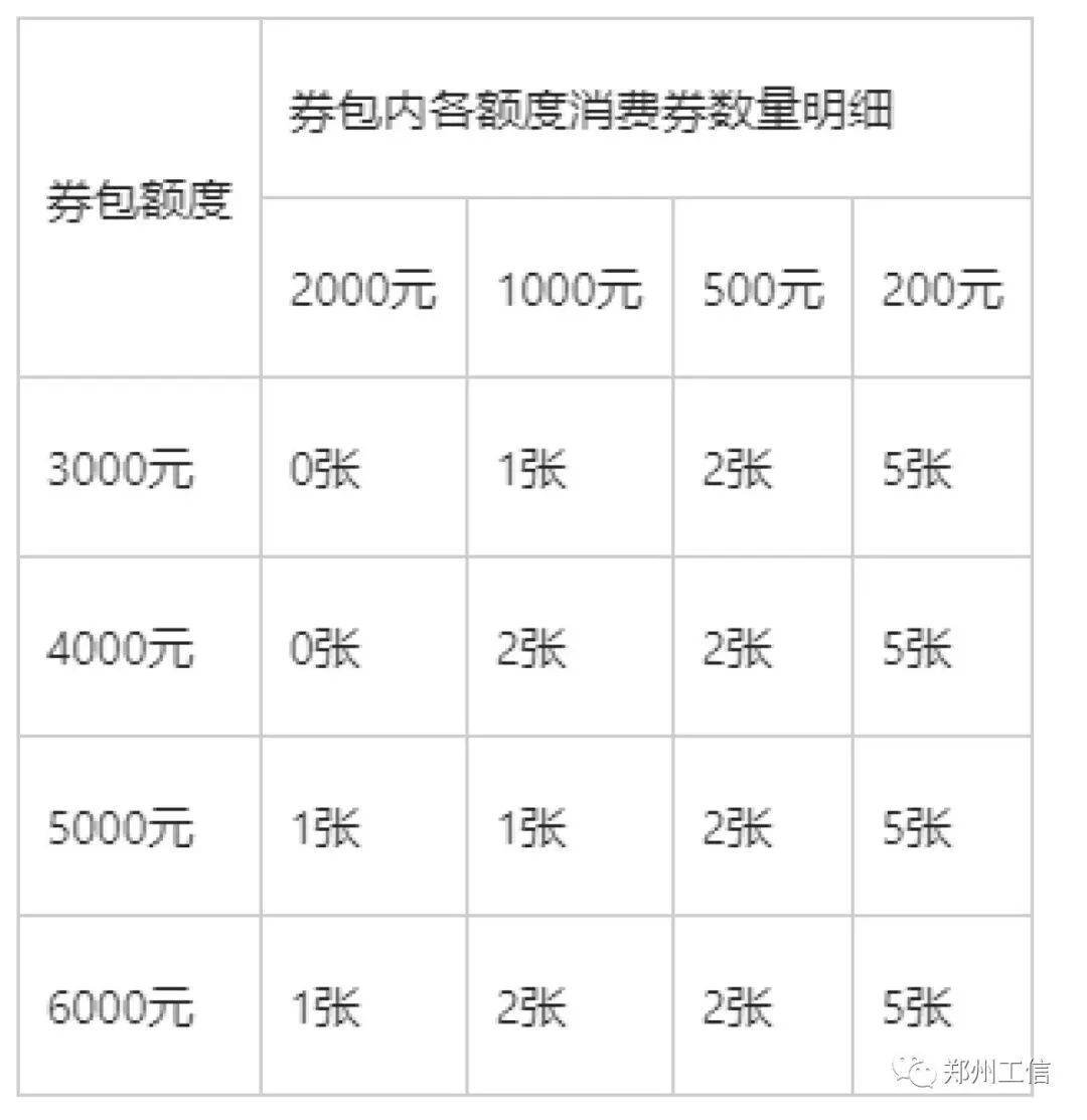 (二)电子消费券券包由200元、500元、1000元和2000元面额的单张消费券组成。