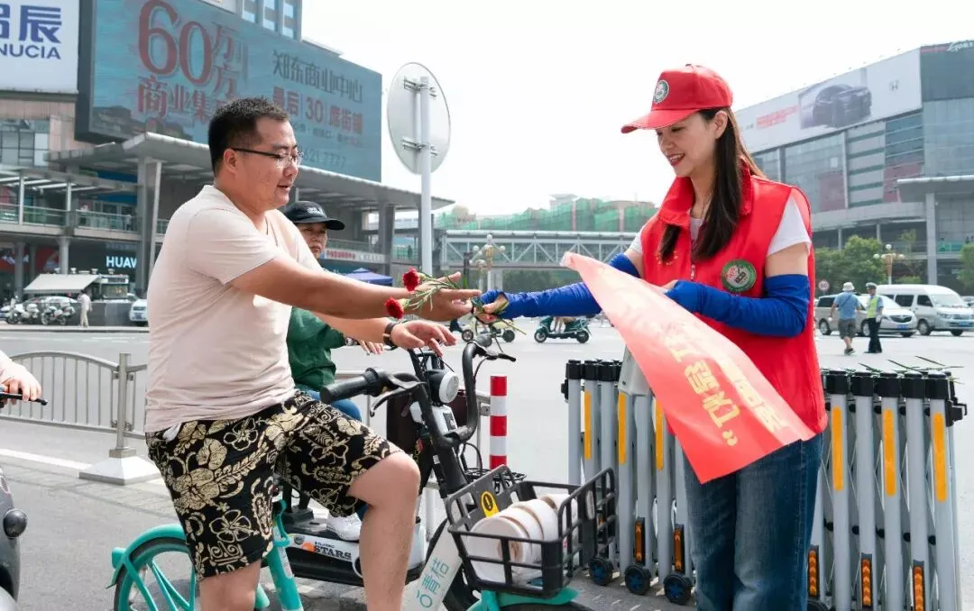 城市文明,交通先行。为迎接第十一届全国少数民族传统体育运动会,细心的市民会发现,郑州市区街头出现了一支“红帽红马甲”的队伍,他们就是绿城交通安全志愿者。7月18日,郑州市交警支队成立志愿服务队,组织社会各界人士走上街头,劝导不文明交通行为,为主动礼让斑马线的文明驾驶员点赞。