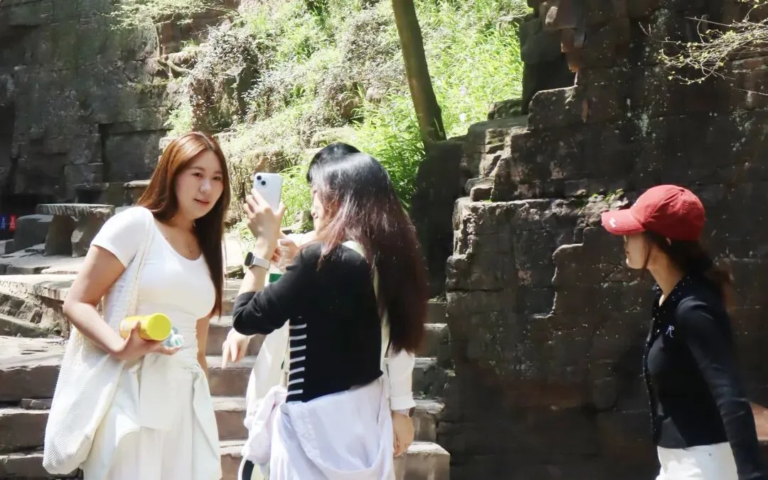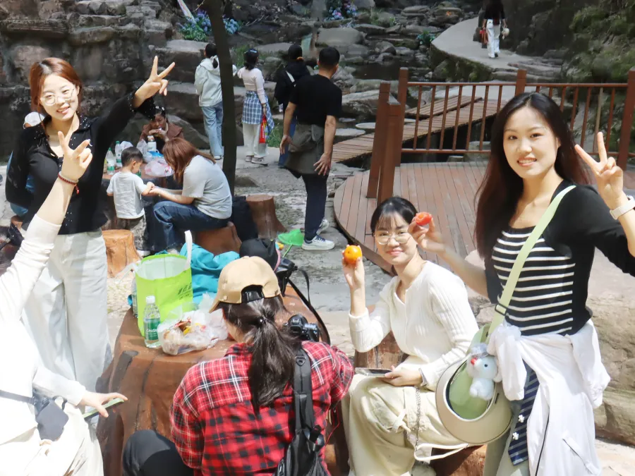 大家三五成群,或驻足观赏地质奇观,感叹大自然的鬼斧神工;或漫步溪边小径,听流水潺潺,看垂柳依依;或打卡留念,将春日的美好与同事间的情谊一同定格,在山水相依间,卸下了工作的疲惫,收获了久违的松弛与喜悦。