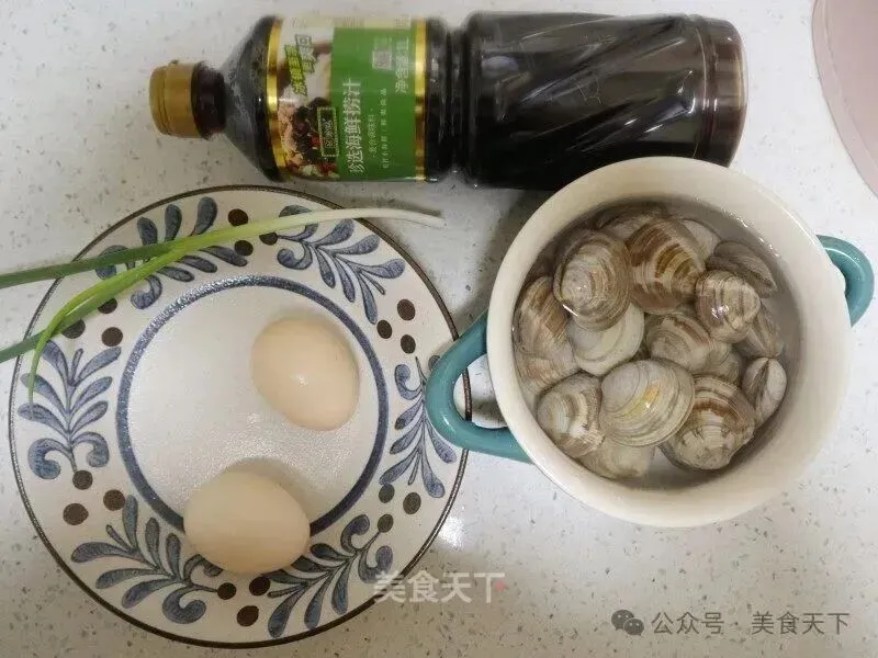 1. 准备主要食材:蛤蜊,鸡蛋,小葱,海鲜捞汁。
