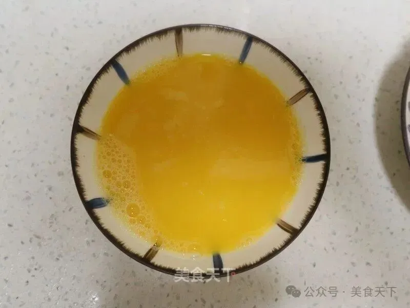 5. 鸡蛋中加入蛤蜊汤打散,去除蛋液沫。