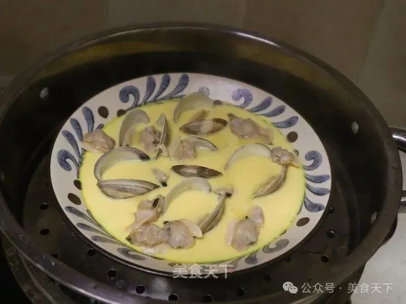 9. 鲜嫩的蛤蜊蒸蛋羹制作完成。