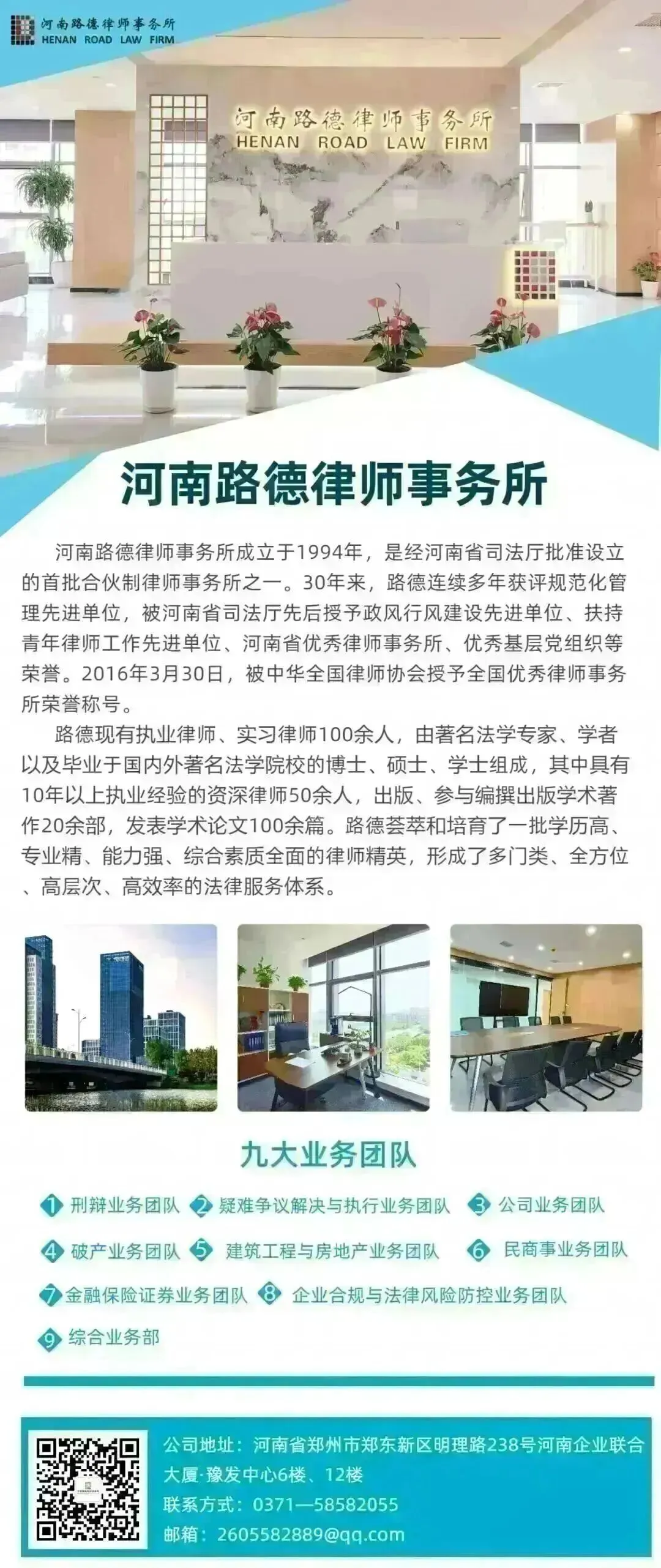 河南路德律师事务所专职律师,执业以来办理了诸多典型案件,涉及合同纠纷、人身损害,民间借贷、婚姻家事,借款纠纷等,积累了一定的办案经验,在执业过程中丰富了专业知识,以当事人利益为先,结合法律事实及法律法规,形成了自己独特的办案方法,在一定程度上使双方当事人“双赢”甚至“多赢”。