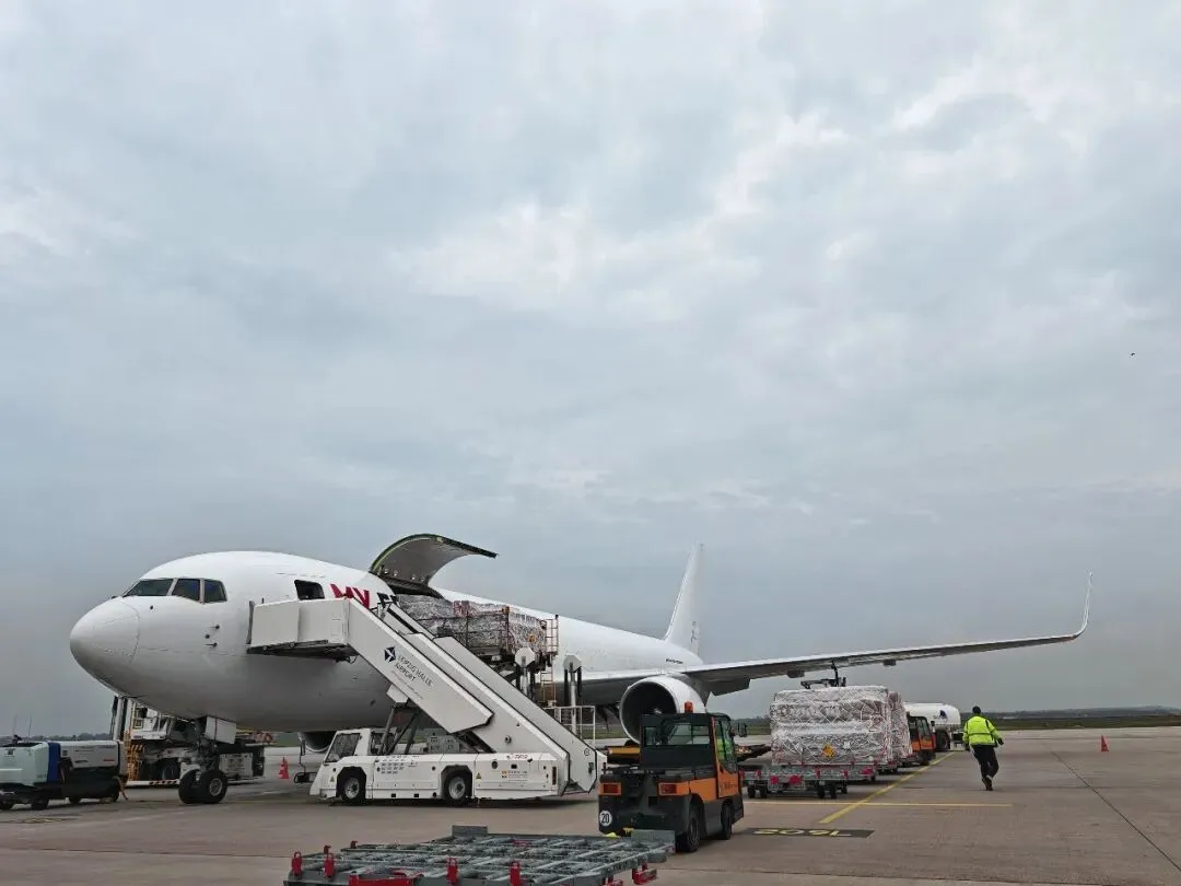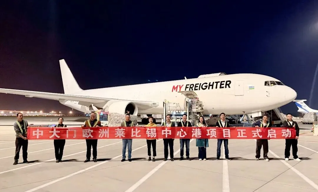 本航班由中大门国际物流集团运营,满载52吨日用百货、小家电、服装饰品等跨境电商货物,从郑州新郑国际机场起飞,前往德国莱比锡/哈勒机场,计划每周执飞两班。莱比锡/哈勒机场是欧洲第四大货运机场,年货邮吞吐量约140万吨,具备辐射欧洲全域的多式联运网络。