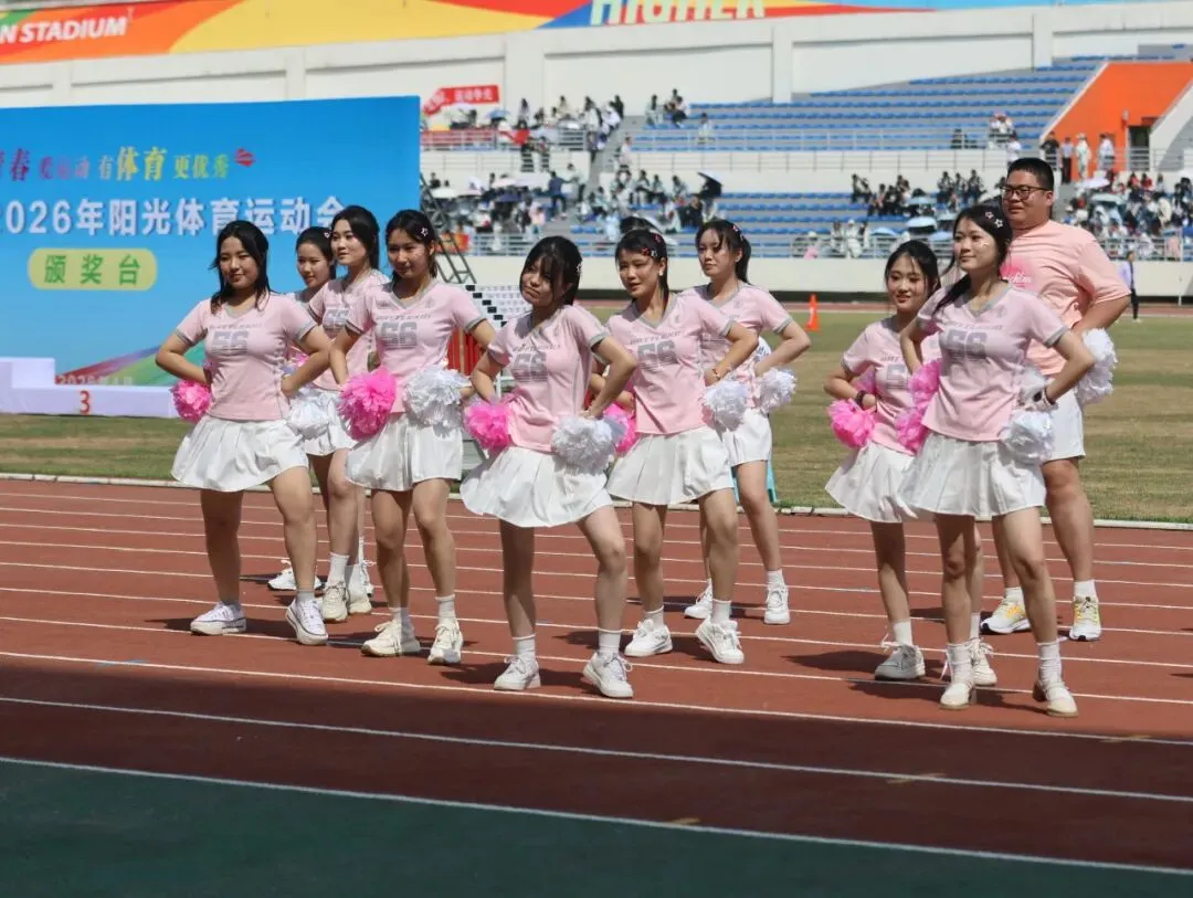 啦啦操队员们身着靓装活力登场,跟着动感节奏跳跃旋转,整齐的动作、灿烂的笑容,直接把赛场氛围拉满,成为运动会上最亮眼的风景。