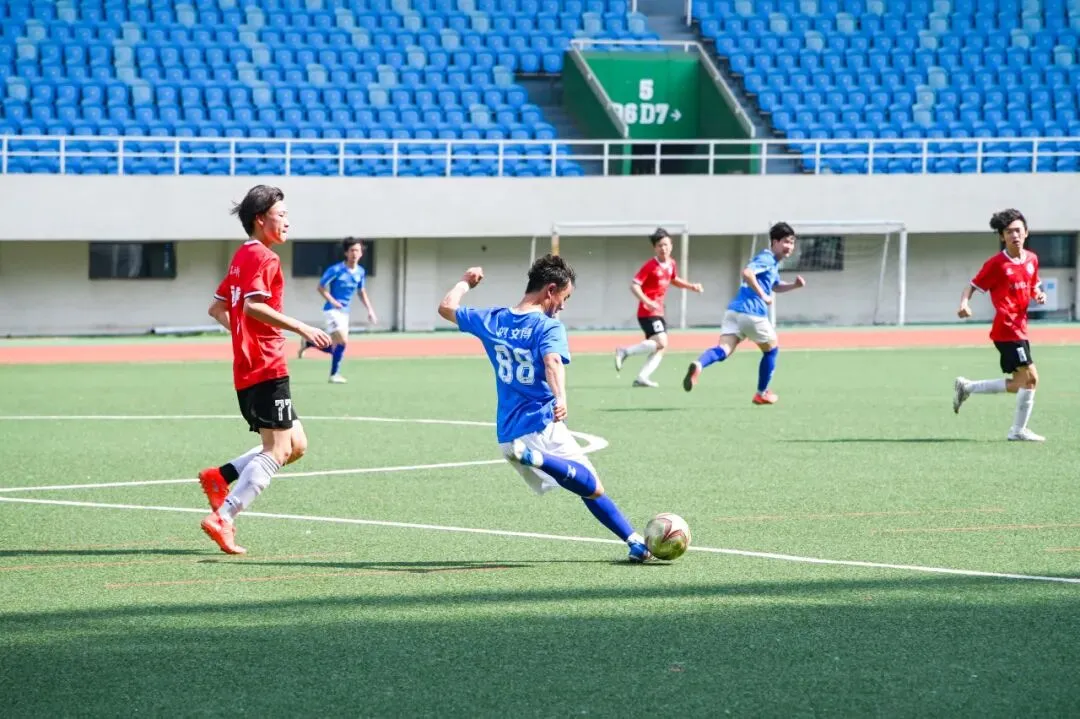 赛场上,全体运动员严格遵守竞赛规则,始终秉持“友谊第一、比赛第二”的体育道德风尚,精神饱满、敢打敢拼,攻防两端均展现出扎实的竞技水平与良好的赛场状态。比赛进行至第55分钟,学校队员刘续泽送出精准过顶传球,队友伊力亚斯快速前插得球后射门得分。