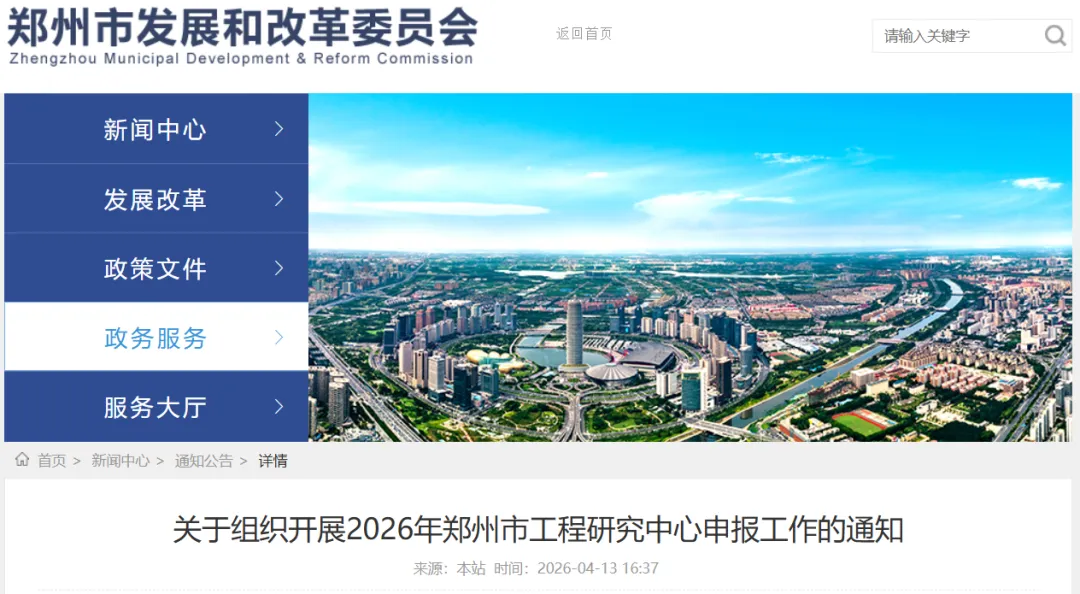 为深入贯彻创新驱动发展战略,加快推进全市产业技术创新与科技成果转化,着力培育壮大高水平创新平台,根据《郑州市工程研究中心管理办法》(郑发改高技〔2016〕559号)等有关规定,现将2026年郑州市工程研究中心申报工作有关事项通知如下: