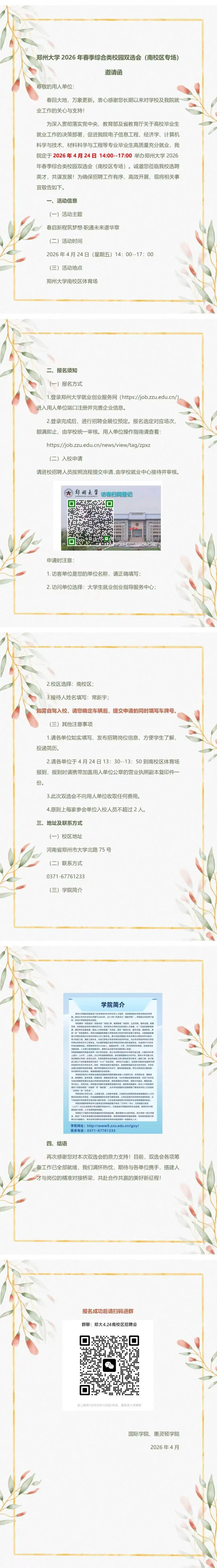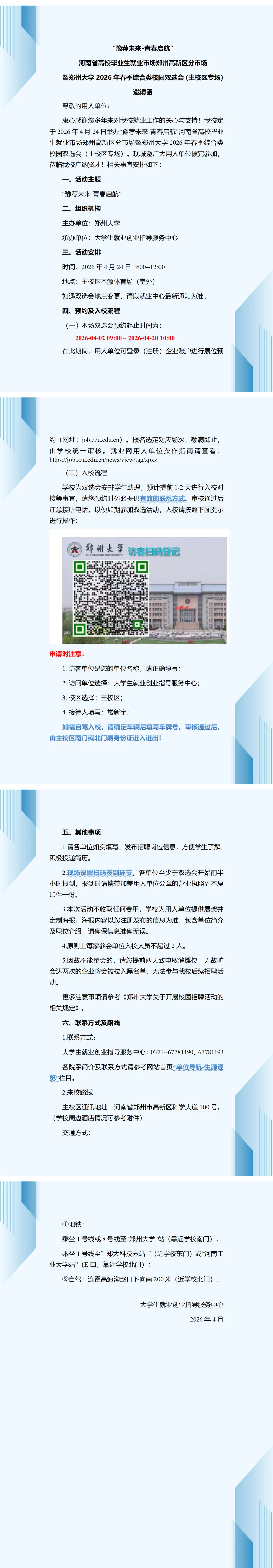 邀请函|郑州大学2026年春季综合类校园双选会