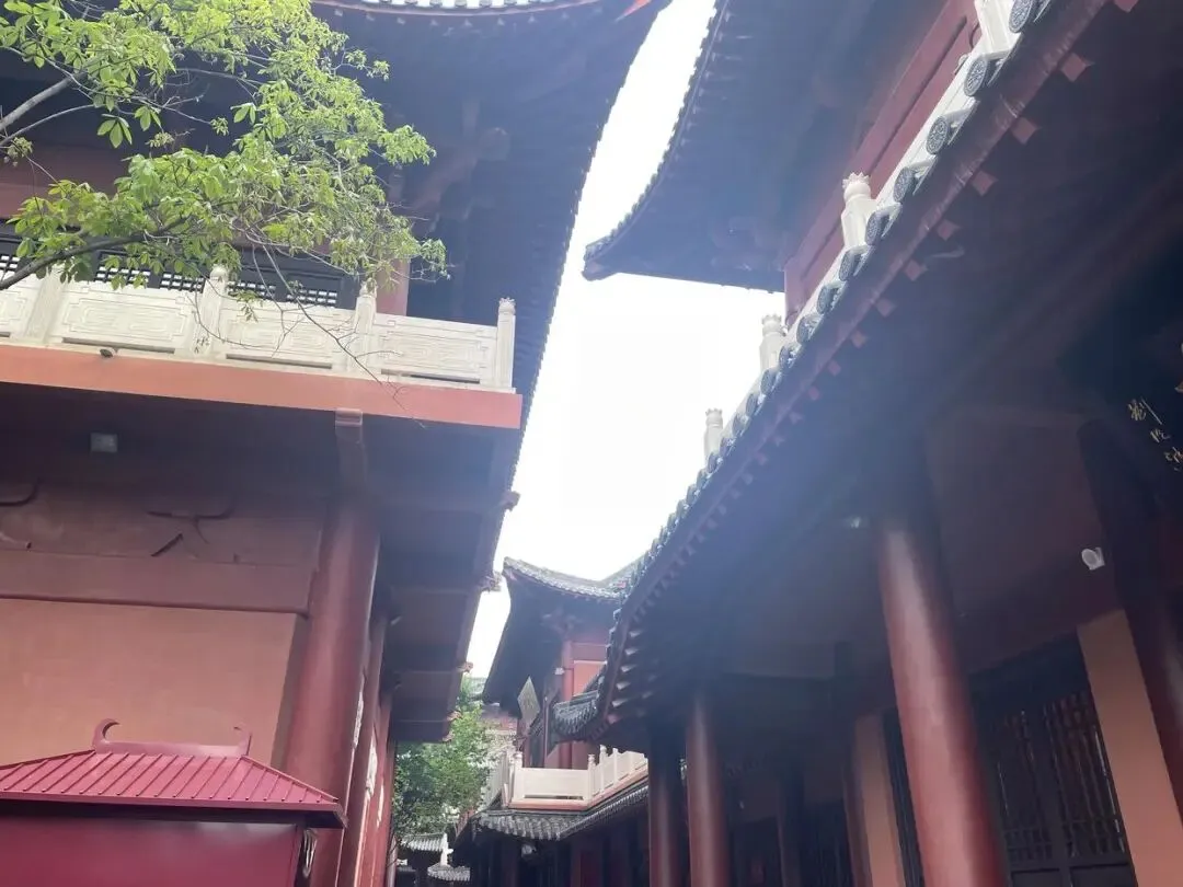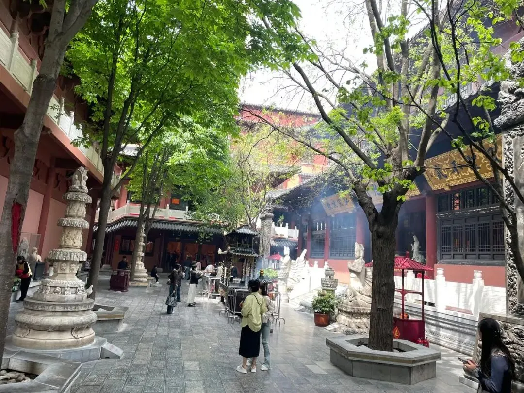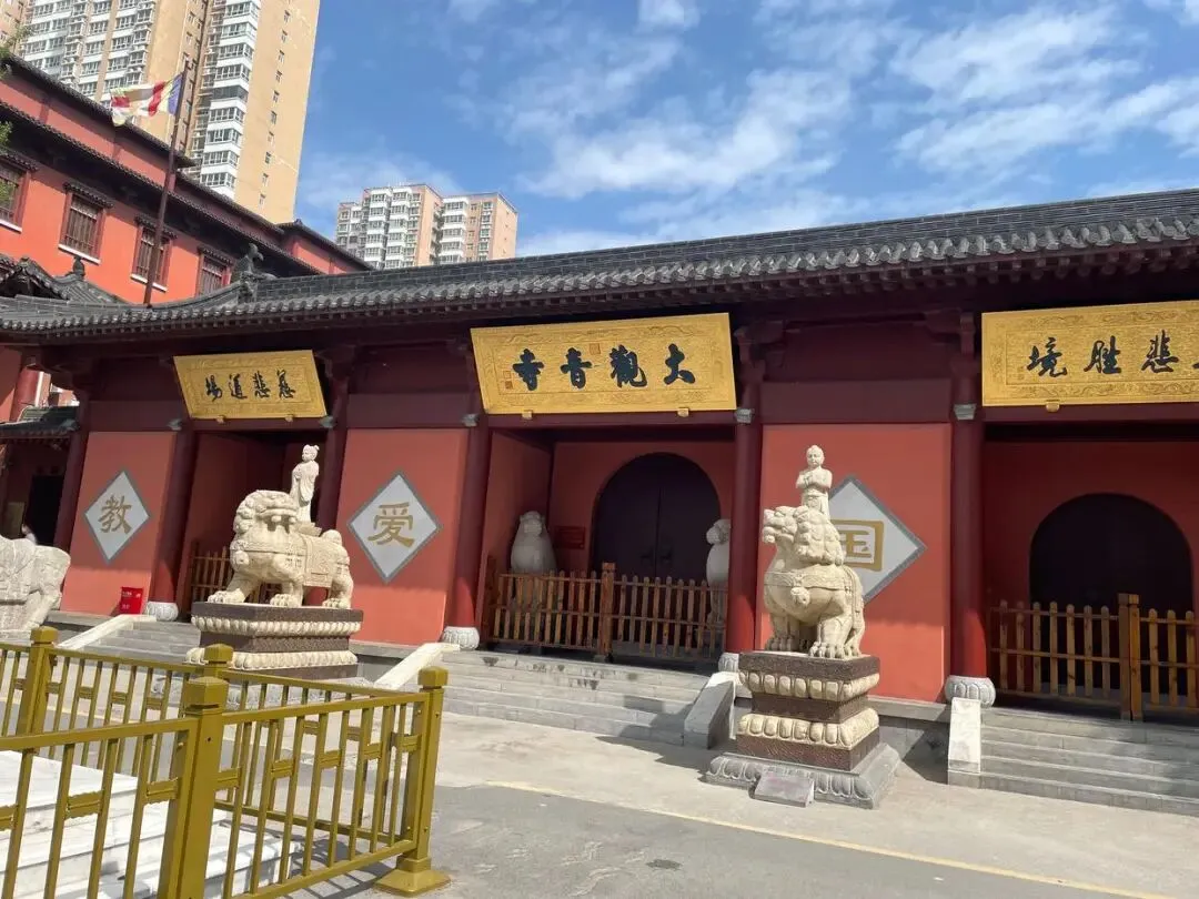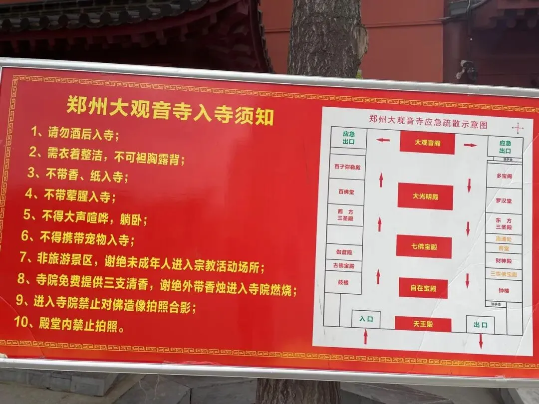 在观音寺的门口看很普通的房子,红砖墙很漂亮,门口人不多,指示牌很明显,从左边门进入,按指示顺序依次进入。
