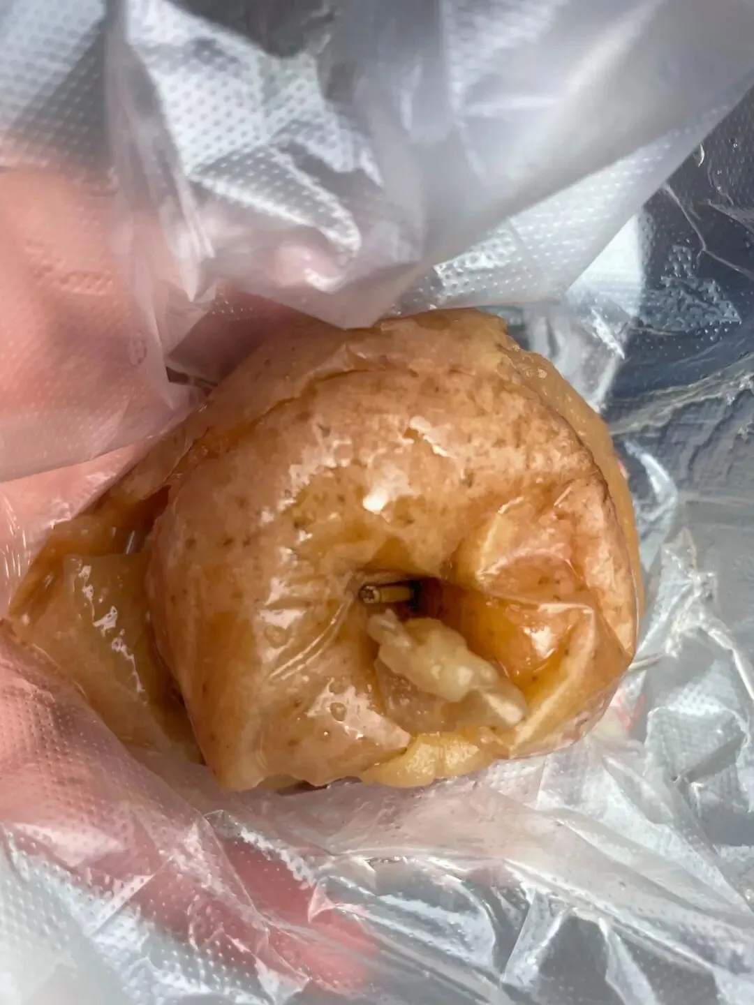 这个时候已经是中午十二十五分有点饿了,我大口吃了两口平安果,好好吃啊!