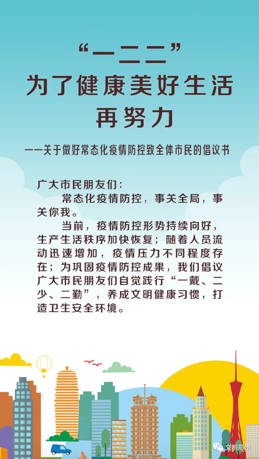 >@郑州人,做好常态化疫情防控,请查收这份倡议书!