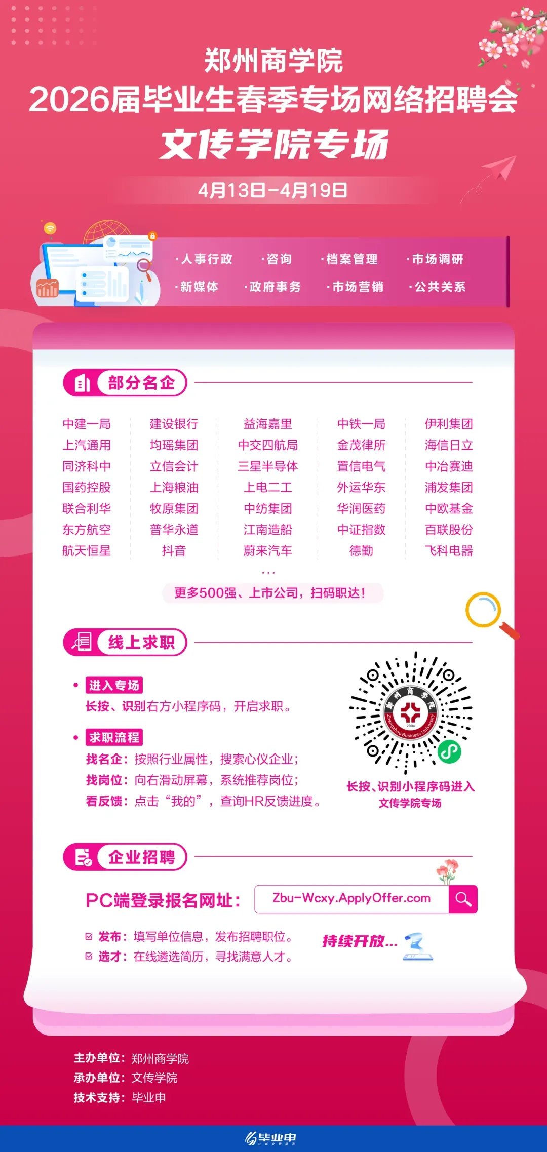 文传学院专场|郑州商学院2026届毕业生春季专场网络招聘会