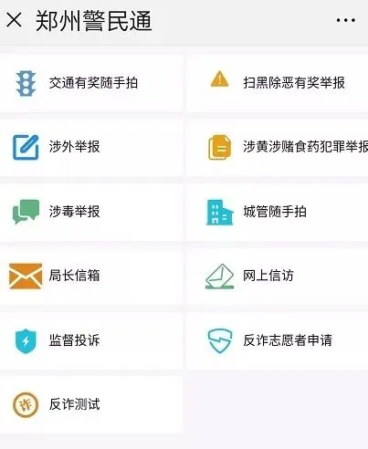 郑州市公安局依托“郑州警民通”微信服务平台,推出了集扫黑除恶、交通、涉外、涉毒和涉黄涉赌涉食药犯罪举报为一体的举报中心。该举报中心主要围绕线索收集、审核认定、奖励发放三个环节,接受扫黑除恶、交通、涉外、涉毒和涉黄涉赌涉食药犯罪等5类违法犯罪线索举报,公安机关经查证核实后将根据相关规定予以奖励。