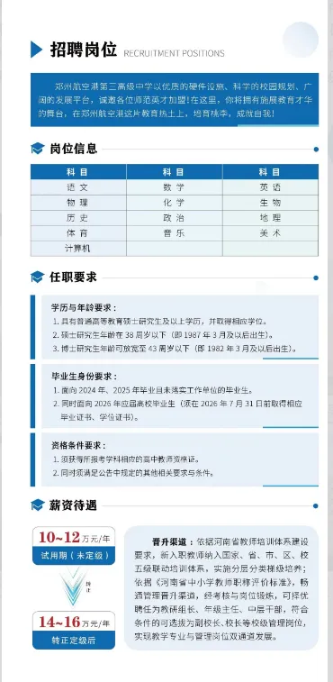 郑州航空港经济综合实验区第三高级中学招聘教师公告(报名时间:4月17日)