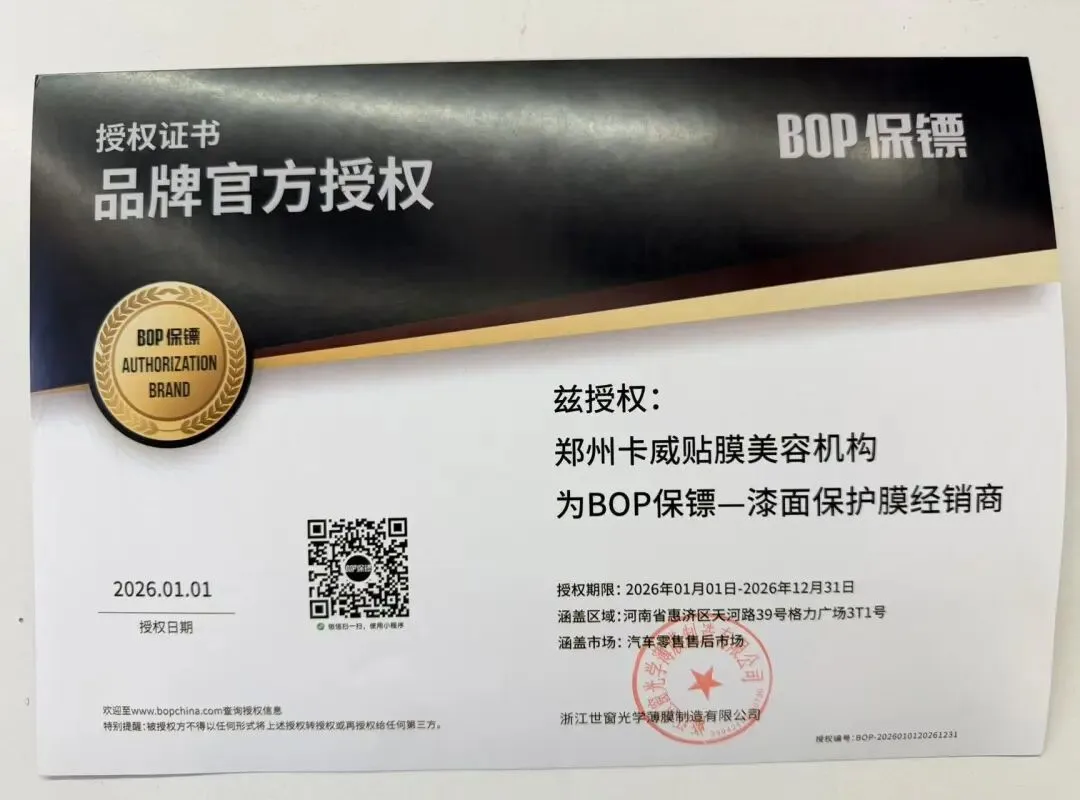 未来,BOP保镖郑州直营店《卡威贴膜》也将继续扎根郑州,围绕汽车贴膜与车辆升级服务持续深耕,在专业施工、服务体验和售后保障上不断提升,努力成为郑州及周边车主更加信赖的汽车服务选择。