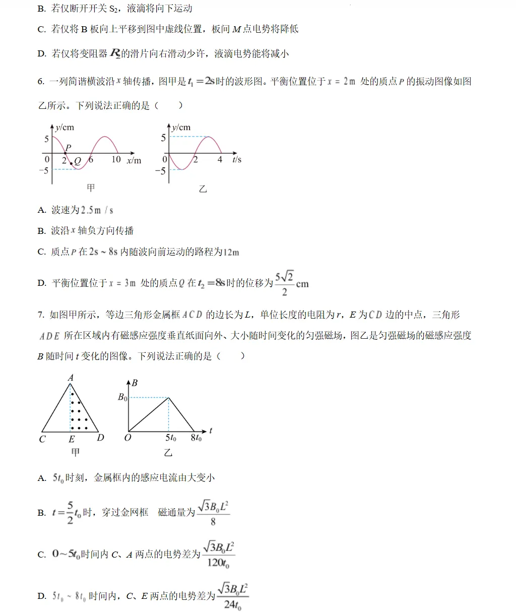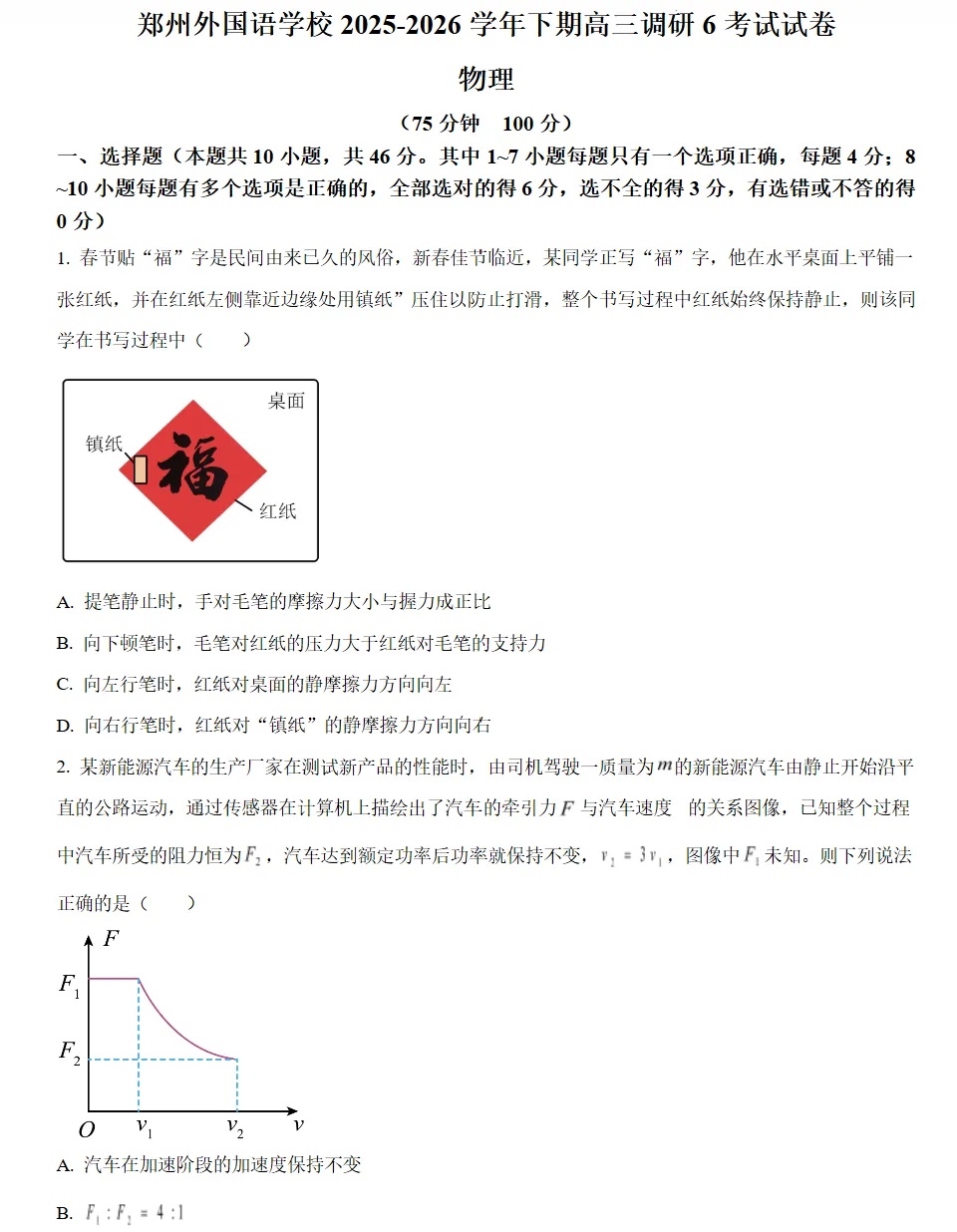 河南郑州外国语学校2025-2026学年高三下学期调研6考试物理试题