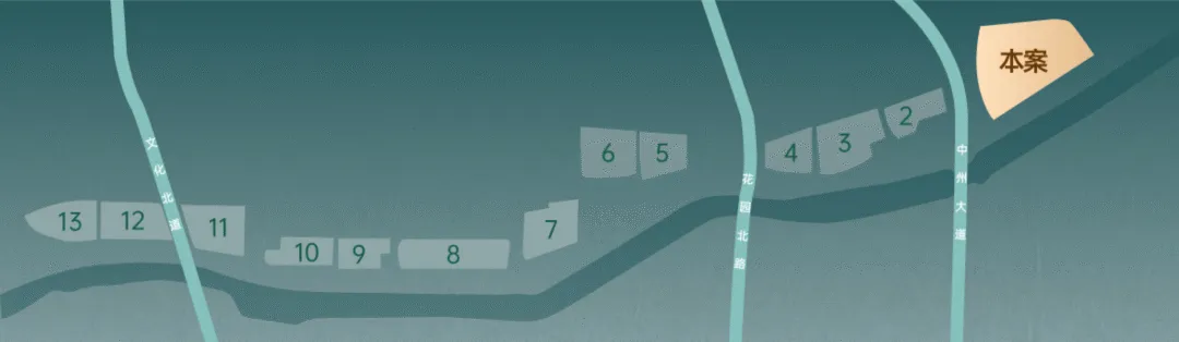 郑州市区只有一条大河——贾鲁河,东风渠、金水河、索须河、七里河、西流湖等都是它的支流。贾鲁河版块——中州大道至文化路段(包括两侧)住宅地块总计13个,封藏北岸东首临河一线终章。