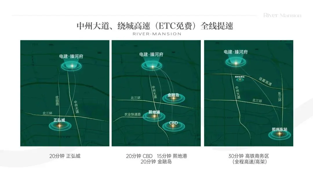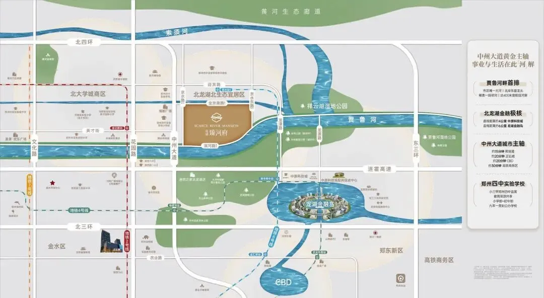 连接北龙湖金融岛、CBD、东站等价值高地,与北三环、连霍、金水路、农业路、陇海高架等多维路网切换畅达全城。