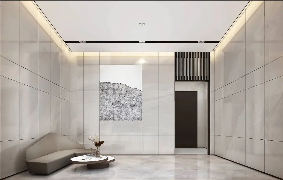 大堂挑空约4.2米,采用与单元大堂同样装修风格,精致美观且富有质感
