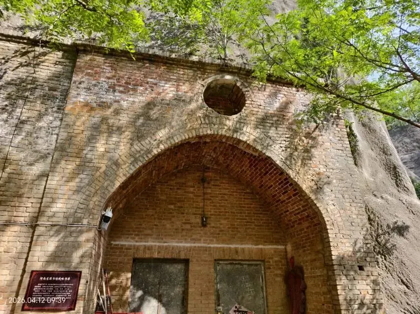 据资料介绍,这里还有藏于沟壑之中、隐匿了近50年的备战仓库群,由军工精心设计,兼具储能、藏物、食宿等多种功能。曾是河南省电影公司的战备仓库,修建于上世纪七十年代,也是中国三大电影胶片基地之一,曾存放过近万套电影胶片拷贝和上万册经典图书,更是我国唯一以窑洞空间存放文化物资的备战仓库群。这座仓库群在2016年被修复改造,成为洞林电影文化博物馆的核心载体,洞内陈列着老电影海报、胶片拷贝和放映设备,满是时代印记。遗憾的是,当天不知何故,仓库群大门紧闭,我未能入内参观,也错过了近距离感受电影文化与备战历史的机会。