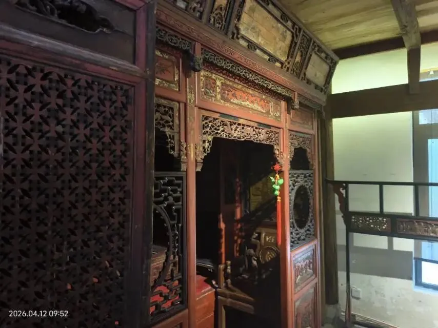 4月12日上午,我乘坐地铁6号线抵达终点站贾峪站,从A口出站后,往东前行四五百米,再拐弯向南下坡,不远的山沟里,便看到了“郑州木华苑民居博物馆”的标牌。木华苑民居博物馆坐落于荥阳市贾峪镇北沟村,占地23余亩,依托备战仓库群、民居博物馆、电影博物馆、窑洞小院、草堂民宿、四水归堂民居等业态,打造出“一园、两馆、三体验”的文旅融合项目,将自然景致与人文底蕴巧妙融合。民居博物馆以北方窑洞为天然背景,以异地移建而来的古祠堂、古民居、古戏楼为核心平台,构建出一组穿越时空的生活美学空间。这些古建筑均来自江西上饶,是馆长郭桦耗时多年拆运、复建而成,其中古民居的构件多达2700余件,全部采用纯榫卯结构搭建,无一颗铁钉,尽显古代工匠的精湛技艺与智慧。