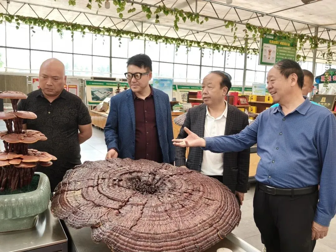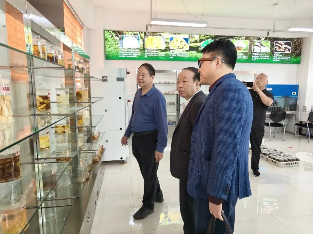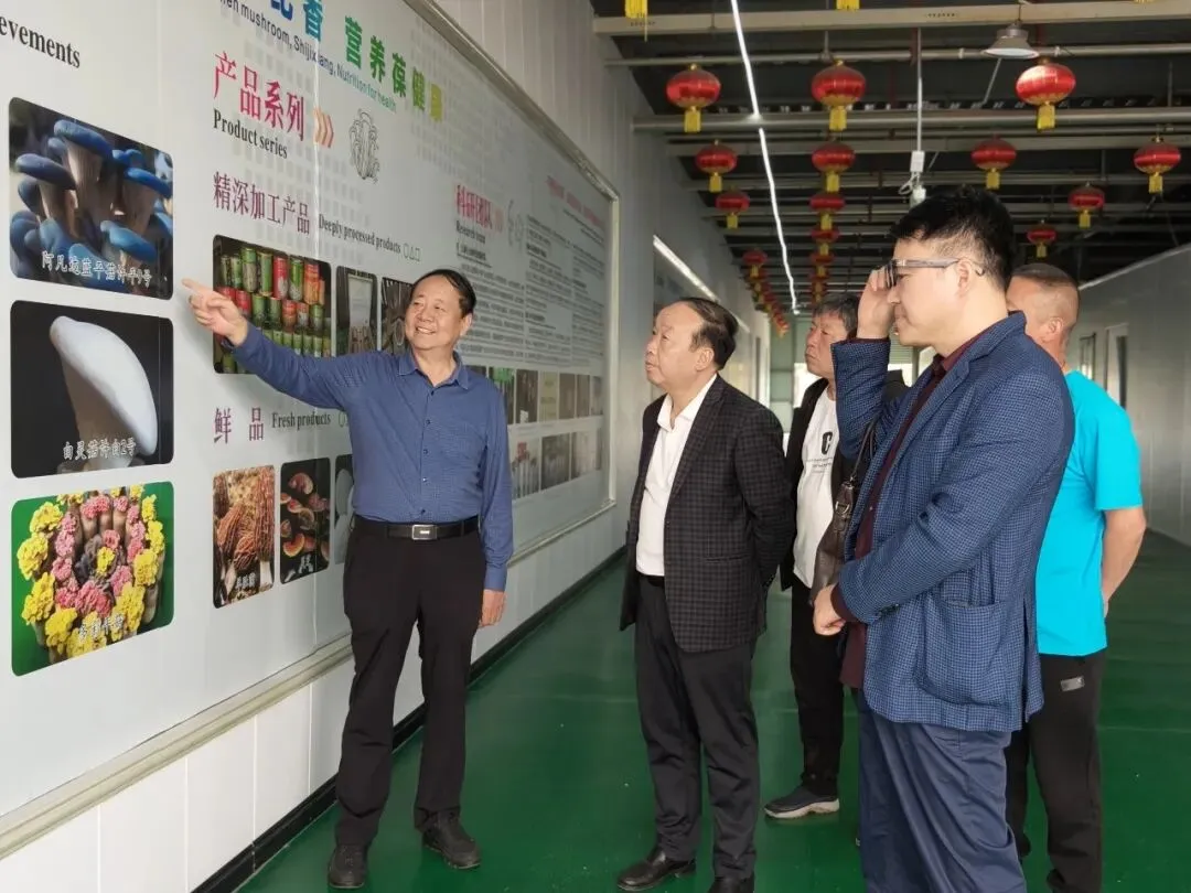 在世纪香菌博园模式化栽培示范区和食用菌精深加工产品展示区,李彦增引领张金岭等参观了公司新推广的移动智能菇房、草腐菌类种植模式、袋装基料地栽模式,以及展示的13大类100多种食用菌精深加工产品。张金岭等对世纪香公司多样化科学的种植模式非常赞赏,对产后回收产品开展加工销售解除种植户的后顾之忧给予高度评价。最后,大家来到公司种质资源实验室,听取公司向农业“芯片”种业进军,开展种质资源保护研发工作情况,观摩了各类菌种保护储备,参观了野生菌标本和食用菌新品种等。